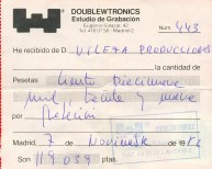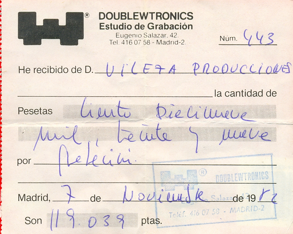 Mención especial a la dedicatoria de la Síntesis (aún con Toño Reber) al ‘Fan number one’, y al recibo de los Estudios Doublewtronics que había dentro de la maqueta de los Neon Provos, por valor 119.039 pesetas, a nombre de ‘Vileza Producciones’.