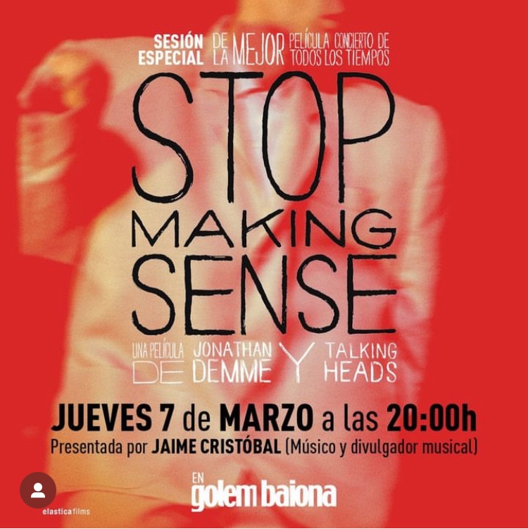 El jueves 7 a las 8:00 pm estaré presentando la espectacular nueva versión de ‘Stop Making Sense’ en los cines Golem. ¡Os espero allí!