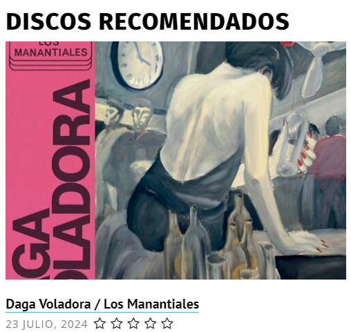 Mis últimas dos contribuciones en Jenesaispop han estado relacionadas con Daga Voladora. Por un lado, la crítica de su delicioso disco ‘Los manantiales’ —que es de lo que más estoy escuchando este verano— y por otro una interesantísima entrevista que le hice días después. Dos recomendables lecturas.